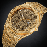 One of our most iconic and successful Limited Edition timepiece is back, this time with an inscription from the most holy place in Islam, Mecca. True traditional timepiece, showcasing a pattern taken from the gold-laced detailing of the Kaaba. A unique piece that demands attention and lifts your outfit to a new class.