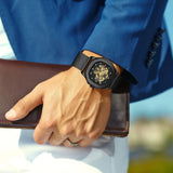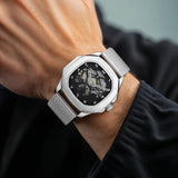 This EROVYST watch is crafted with a sleek stainless steel case and band, offering durability and sophistication for any occasion. Its impressive 43mm dial and 12.5mm case thickness create a bold yet comfortable wrist presence, while the Arabic numeral markers ensure easy readability with a stylish touch. Designed with a 220mm band length and 22mm width, it provides a secure, tailored fit, fastened by a dependable buckle clasp. Driven by precise quartz movement, this timepiece guarantees reliable timekeeping, blending modern elegance with everyday functionality.